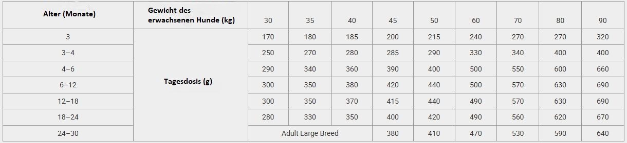 Ein komplettes Trockenfutter mit Huhn für Welpen großer Rassen, das den heranwachsenden Hund mit der Energie und den Nährstoffen versorgt, die er für sein Wachstum und seine Entwicklung benötigt. Insgesamt 90% des enthaltenen Proteins sind tierischen Ursprungs. Das Granulat enthält Chondroprotektiva, die den Gelenkknorpel während des Wachstums pflegen und so Gelenkproblemen im Erwachsenenalter vorbeugen. Vitamine und Mineralstoffe tragen zur allgemeinen Gesundheit bei und stärken das Immunsystem. Lachsöl trägt zur Pflege einer gesunden Haut und eines glänzenden Fells bei.