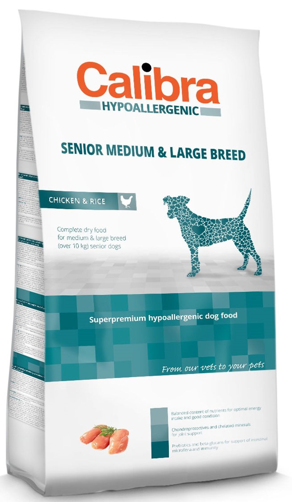 Calibra Senior Medium & Large Breed / Chicken & Rice ist ein Hypoallergenes Futter dass für erwachsene Hunde der großen und sehr großen Rassen geeignet ist. Das Granulat ist ideal für das Bewegungsaparat und gilt auch als Nahrung für das Gelenk. Das Futter ist leicht verdaulich, enthält Hühnerfleisch und hat einen niedrigen Getreide Inhalt, so ist es für die Hunde die eine empflindliche Verdauung haben ideal.